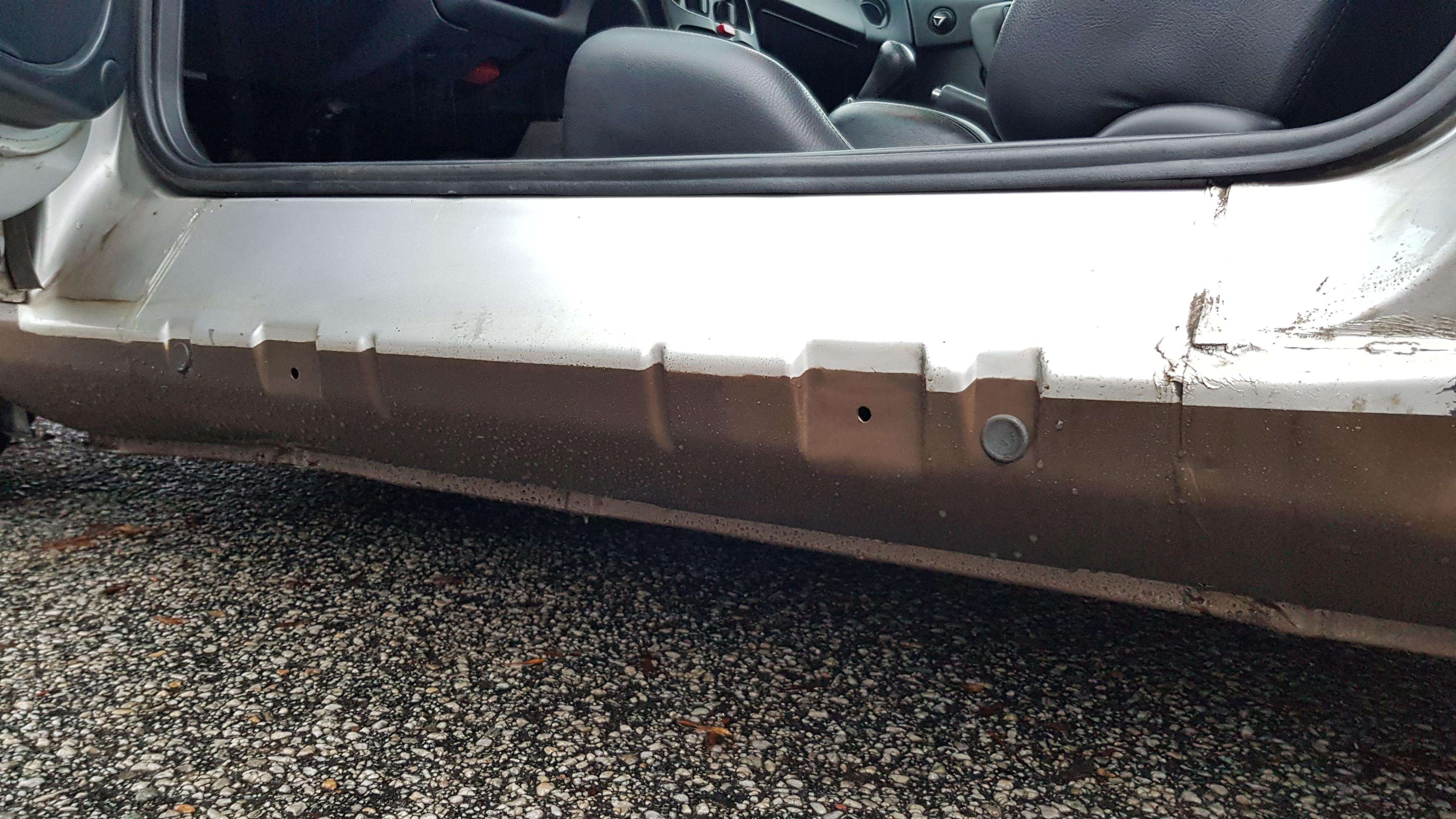 Som ni kanske märker av förra posten börjar jag få slut på rena kosmetiska åtgärder. Sambon återvände till sist från tjänsteresan och började omedelbart mumla okvädningsord om tröskelskydden i duschkabinen, så jag bokade illa kvickt en rostskyddsbehandling som ursäkt för att inte montera tillbaka dem.