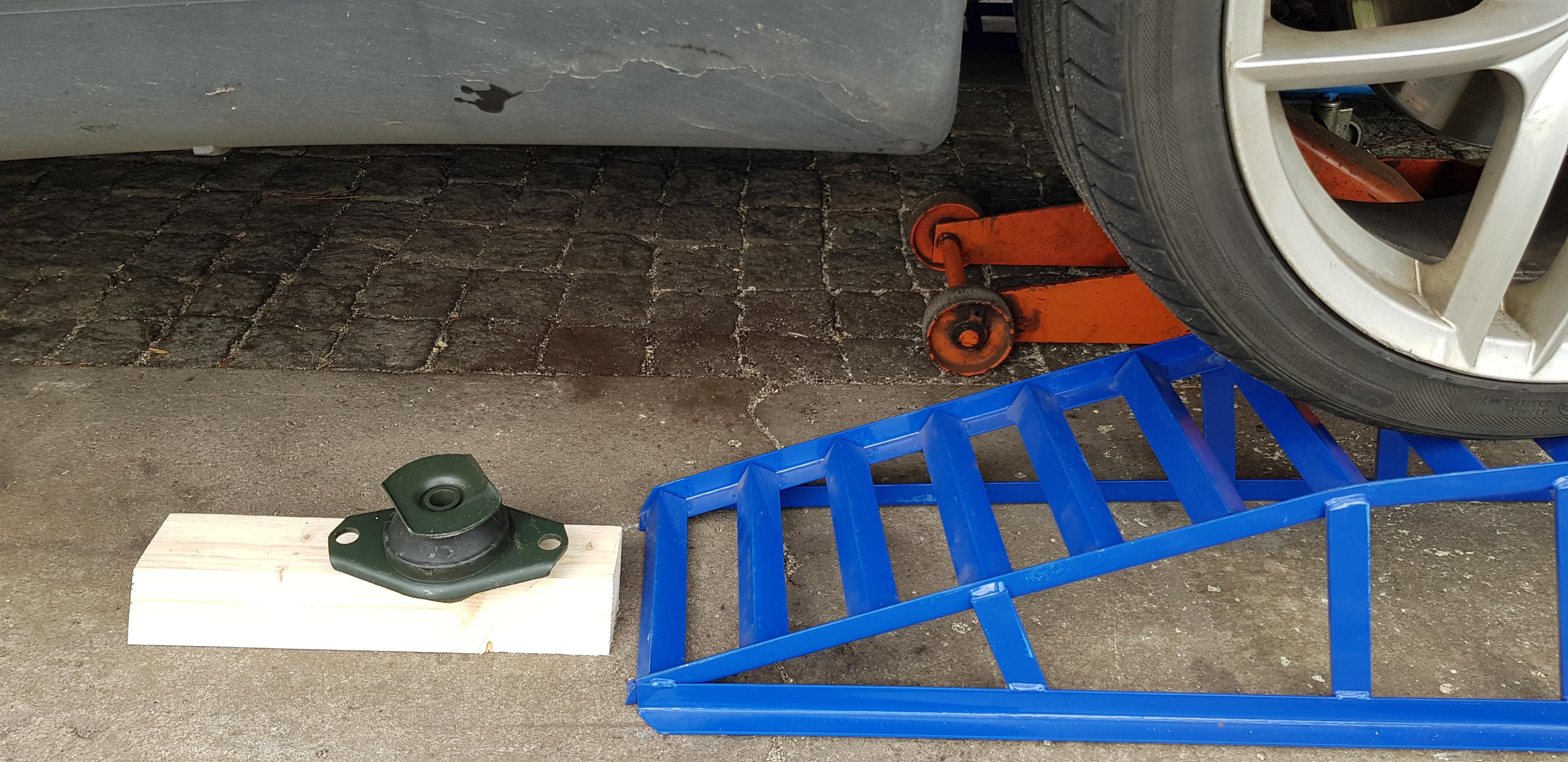 Någonting är dock inte helt friskt med bilen. Det känns som att motor och växellåda rör sig alldeles för mycket, och vid uppväxling eller motorbroms kan man ibland höra ett enstaka metalliskt slag.De första veckorna av ägande på sensommaren var en smula nervösa. Var det bara ett motorfäste, eller var det en drivaxel? Eller rentav något otäckt slitage inuti växellådan? Med en assistent som kunde stå och observera motorn medan jag gasade stod det klart att det var det övre stabiliseringsstaget som inte gjorde sitt jobb. Det kan ju varken vara dyrt eller svårt, tänker man ju då?