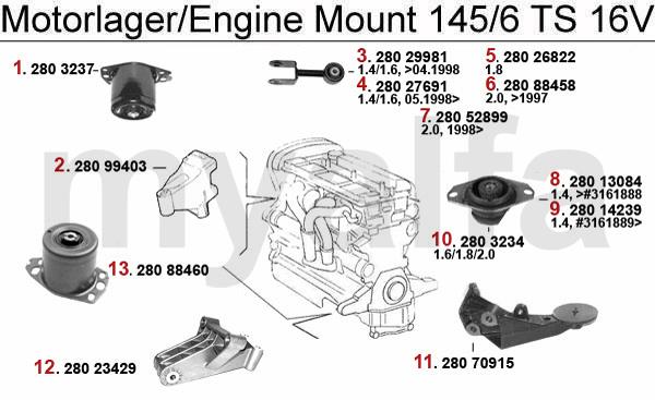 Det kan man tycka, men icke. Om man till exempel tittar på denna bild (lånad från Areseparts) så står det klart att det finns ett gäng modeller att välja mellan. Och givetvis är min av den äldre typen, 280 88458. Och givetvis har Alfa i sin oändliga visdom bestämt sig för att sluta tillverka den, trots att det ska vara ett vanligt slitage på GTV:erna. Hos de flesta handlare runtom i Europa står just 88458 som ej tillgänglig, förutom ett par som inte verkar veta om att det finns olika versioner.