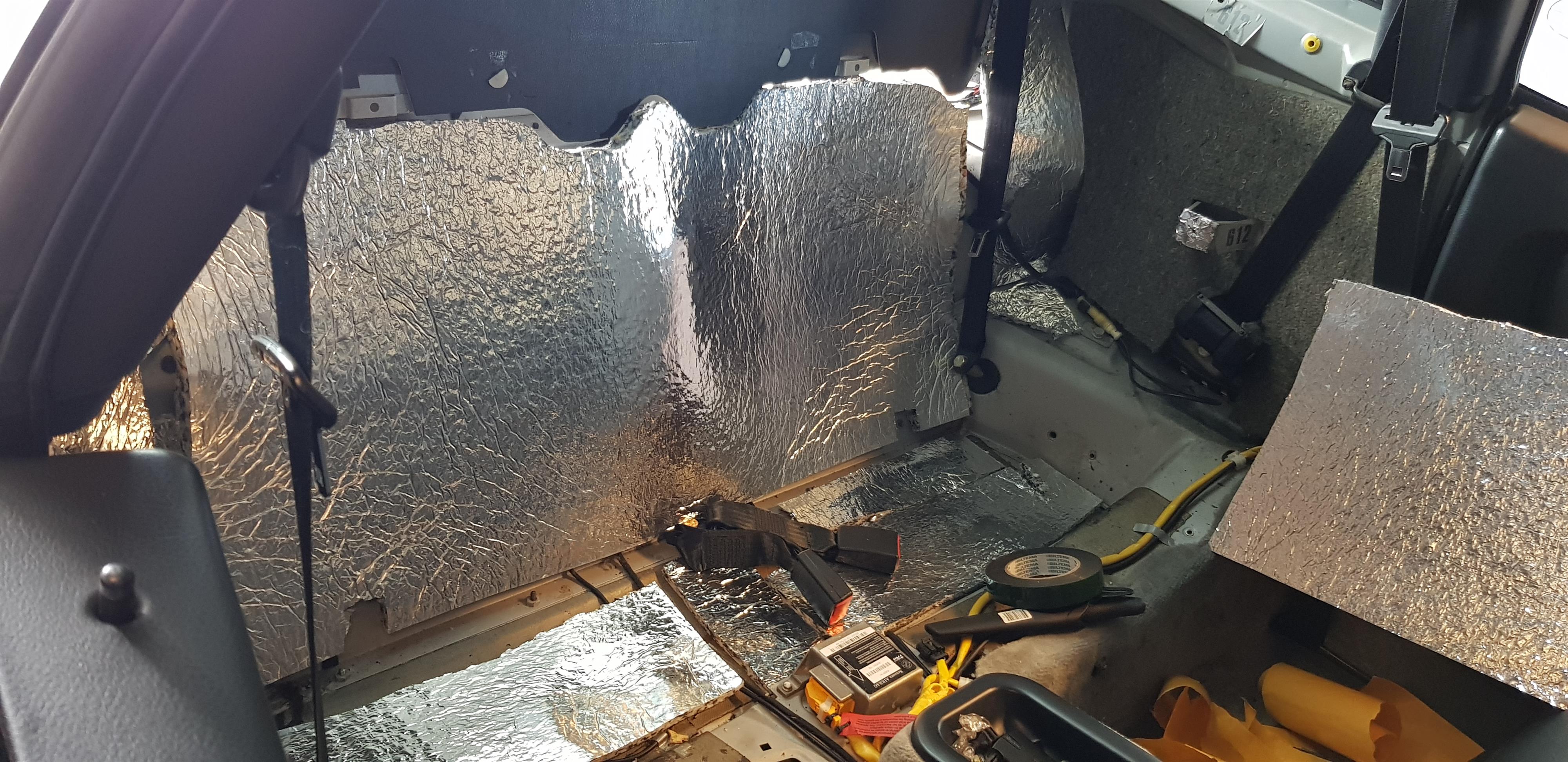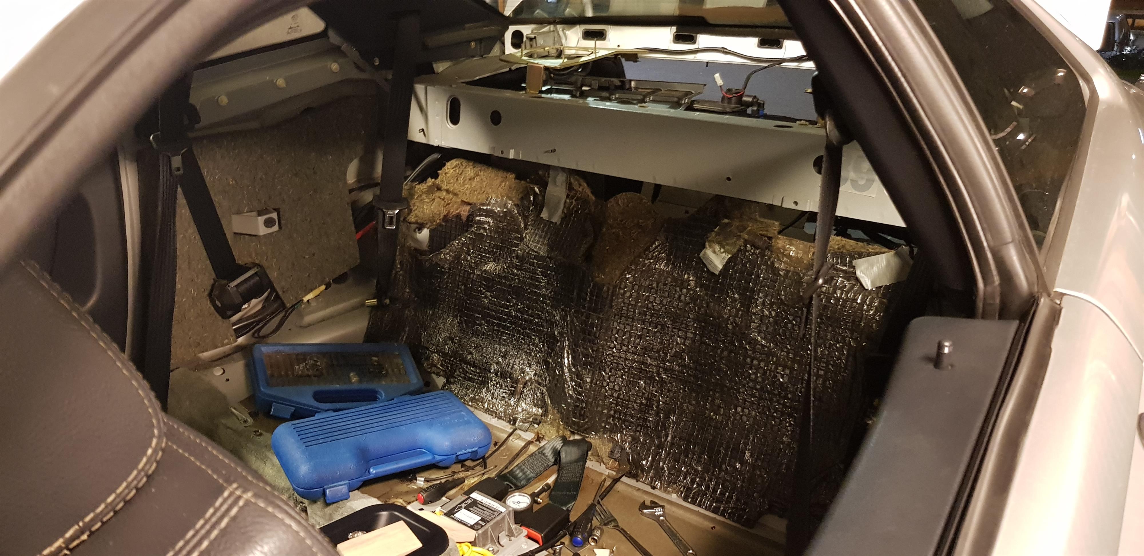 8 mars, 2020 kl. 23:32 #49470Till sist: Komplettering av ljudisolering på ställen där jag tror att Alfa glömde sätta någon. En del extra vibrationsdämpande material på insidan av innerpanelen också, bara för säkerhets skull. Bitumen fäster bättre när det blir varmt, men jag vågar inte använda värmepistol på dessa delar. Äntligen förstår jag varför sambon köpte en dyr hårfön!