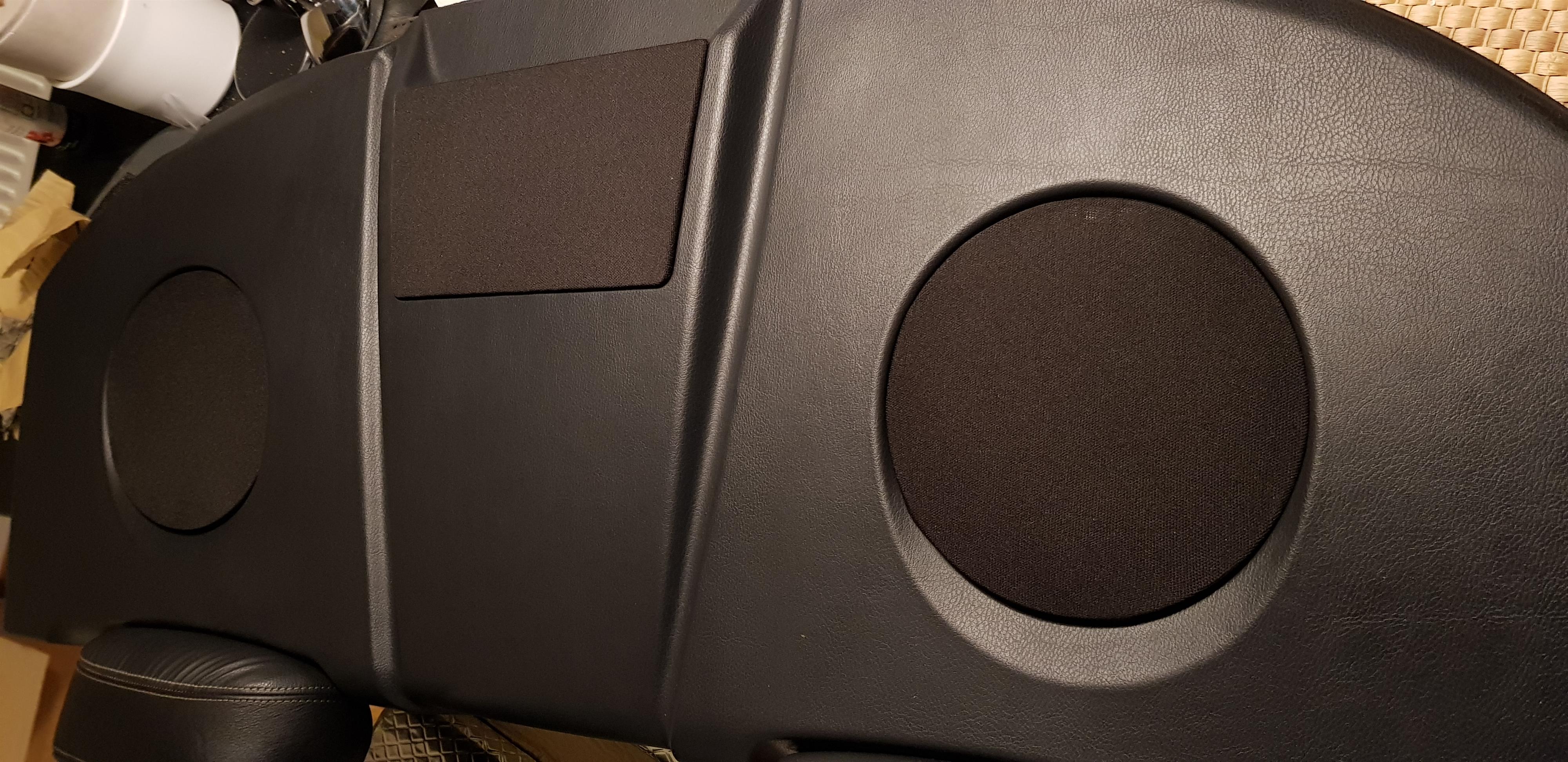 När jag köpte bilen hade jag läst i dess gamla byggtråd att högtalarna skulle vara uppgraderade till rätt ok grejer. Nu är jag ingen billjudsexpert (banåkning är mer min grej, så alla onödiga gram måste bort), men något var uppenbart fel redan när jag köpte den. Väldigt lite ljud kom från hatthyllans 6.5-tumshögtalare, nästan allt ljud kom framifrån. Om man försökte spela musik med det minsta lilla bas så lät bakhögtalarna väldigt illa, det fick mig att tro att en membran skulle kunna vara sprucket.
