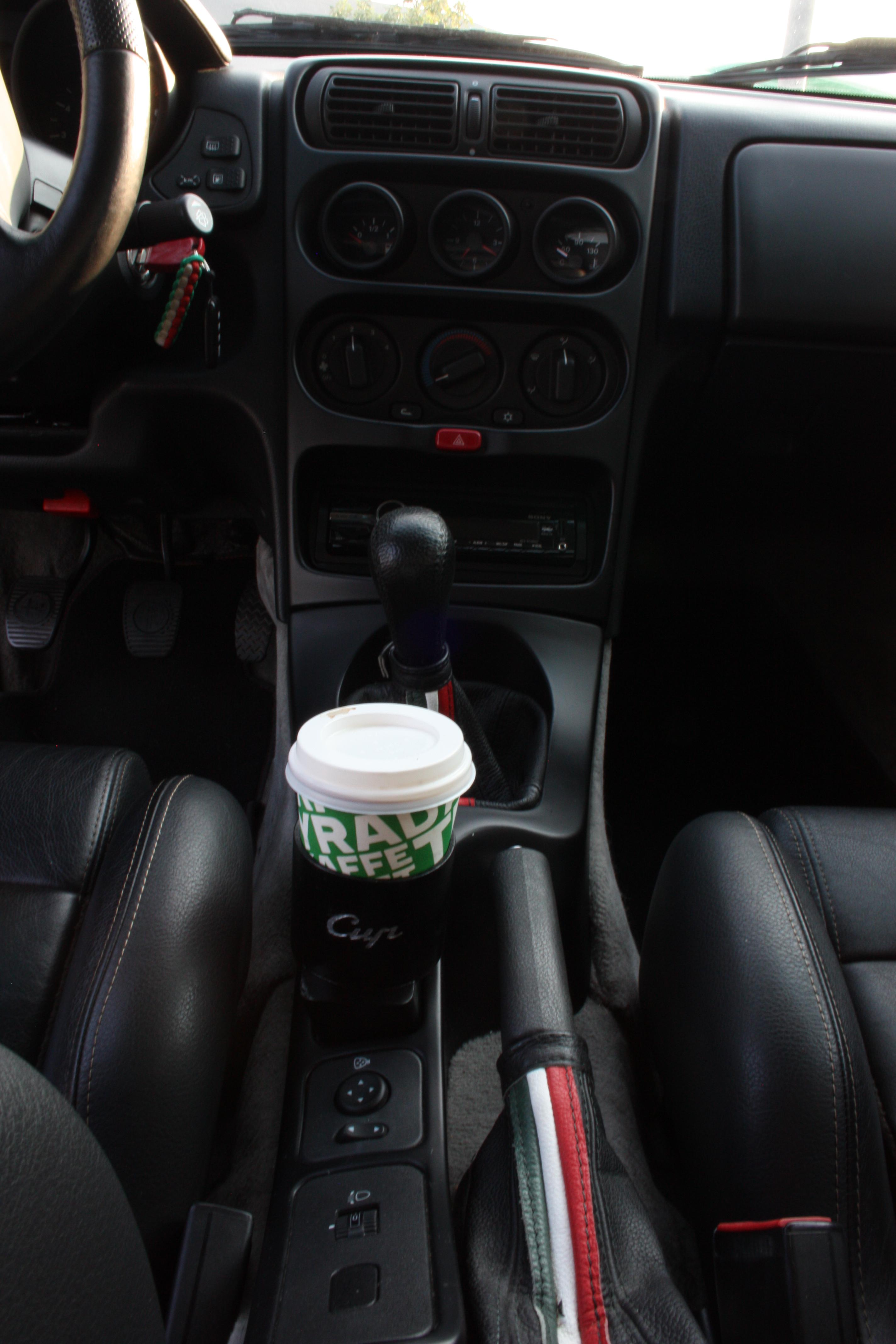 Det ena lägret menar att en sann Alfa Romeo inte ska ha några mugghållare. Om du känner dig törstig så dricker du inte kaffe i bilen. Du kör inom en liten by, parkerar bilen och sätter dig på ett café medan du tar en espresso och studerar förbipasserande flickor.