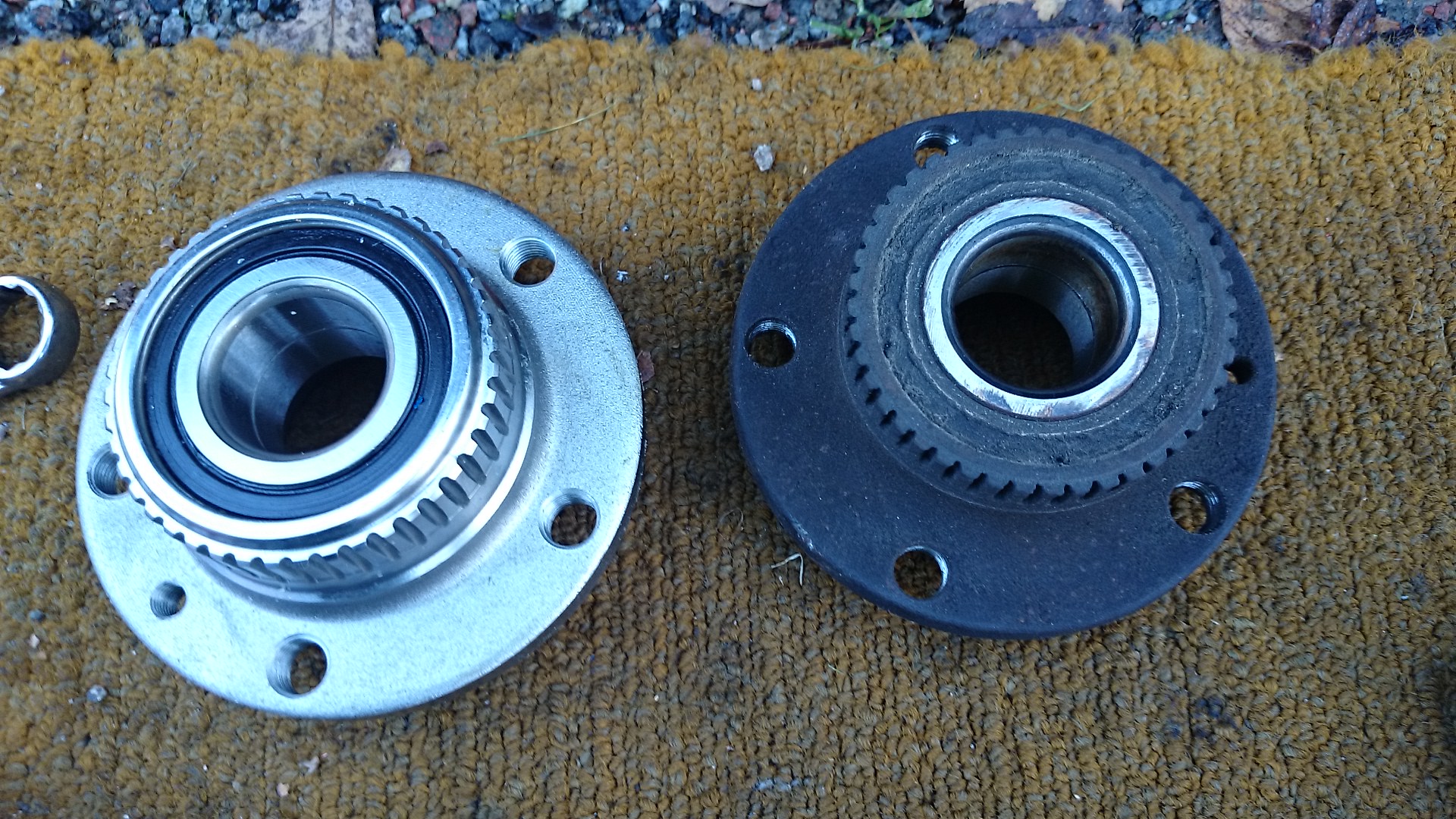 4) Gammalt och nytt lager. Tandningen är för ABS-givaren.