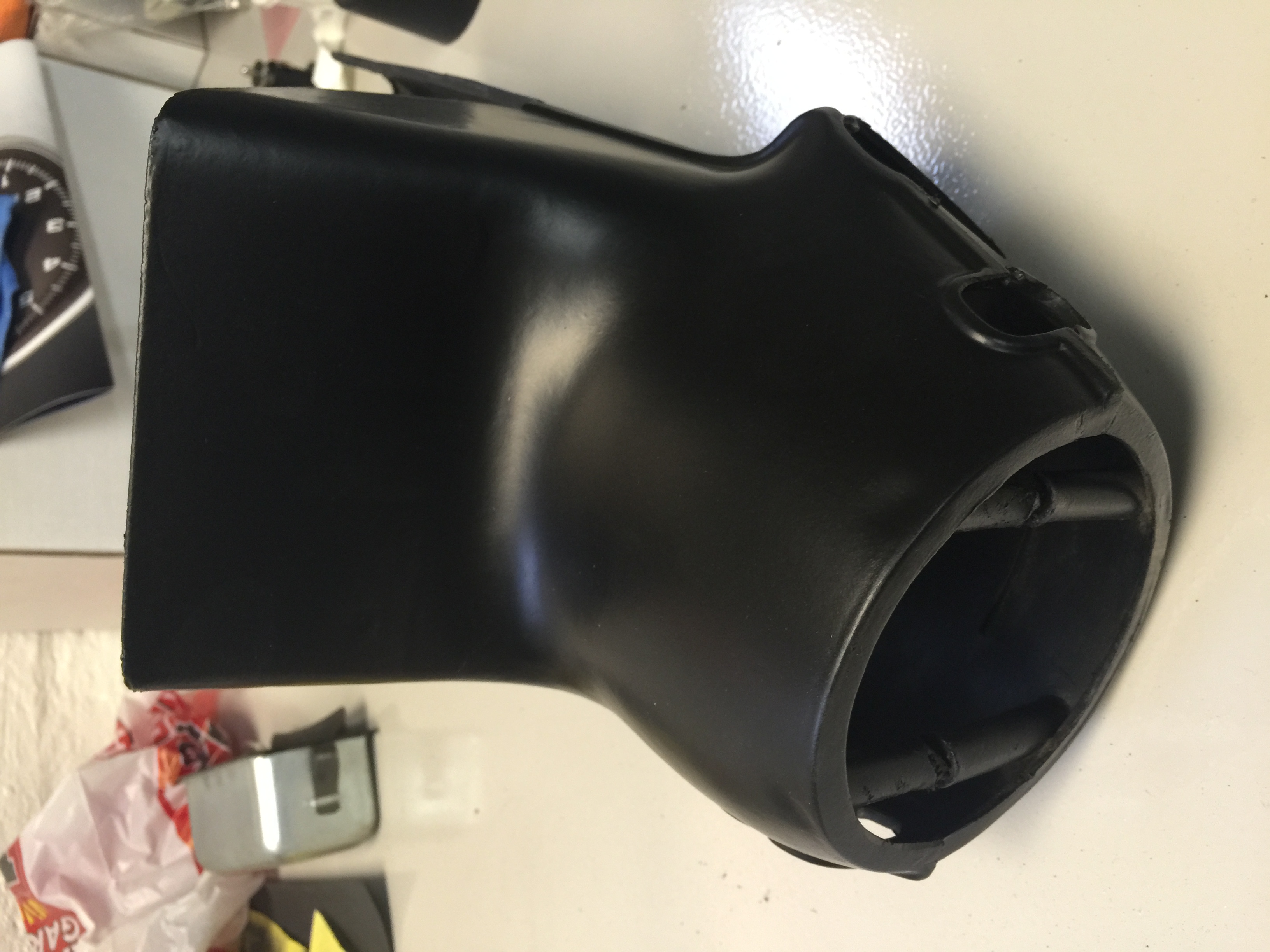 Sen åkte jag till bultjätten och köpte lite små insexor till rattstångskåpan som sprayades med plastidip tidigare och skruvade ihop den på prov. Tror det kan bli helt ok…